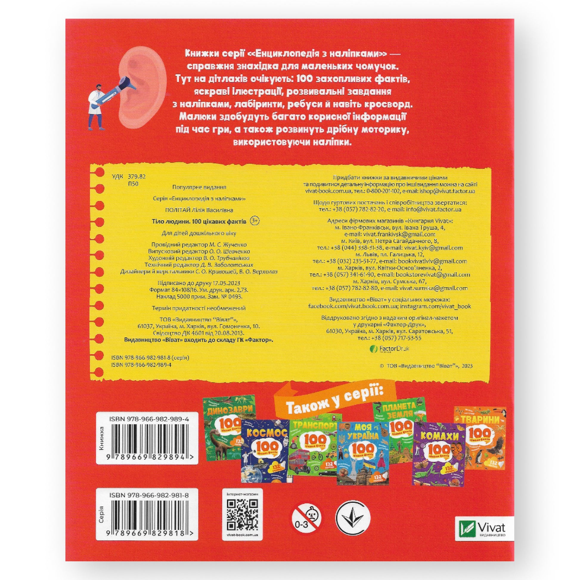 Книжки серії «Енциклопедія з наліпками» — справжня знахідка для маленьких чомучок. Тут вони знайдуть: 100 захопливих фактів, яскраві ілюстрації, розвивальні завдання з наліпками, лабіринти, ребуси і навіть кросворд. Малюки дізнаються багато корисної інформації під час гри, а також розвинуть дрібну моторику, використовуючи наліпки.