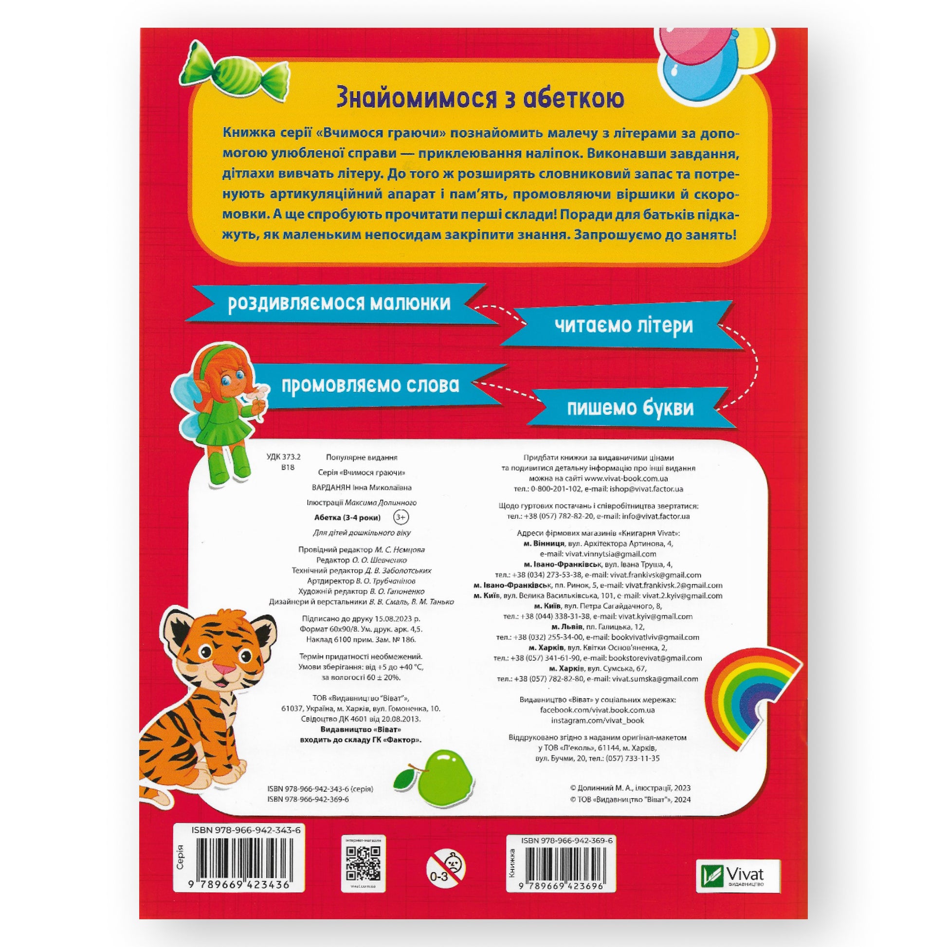 Книжка "Абетка" складена з урахуванням усіх модернових педагогічних підходів для вивчення літер. Яскраві ілюстрації допоможуть дитині сконцентруватися та стимулюватимуть фантазію, наліпки розвиватимуть моторику, а віршики та скоромовки легкі та цікаві.