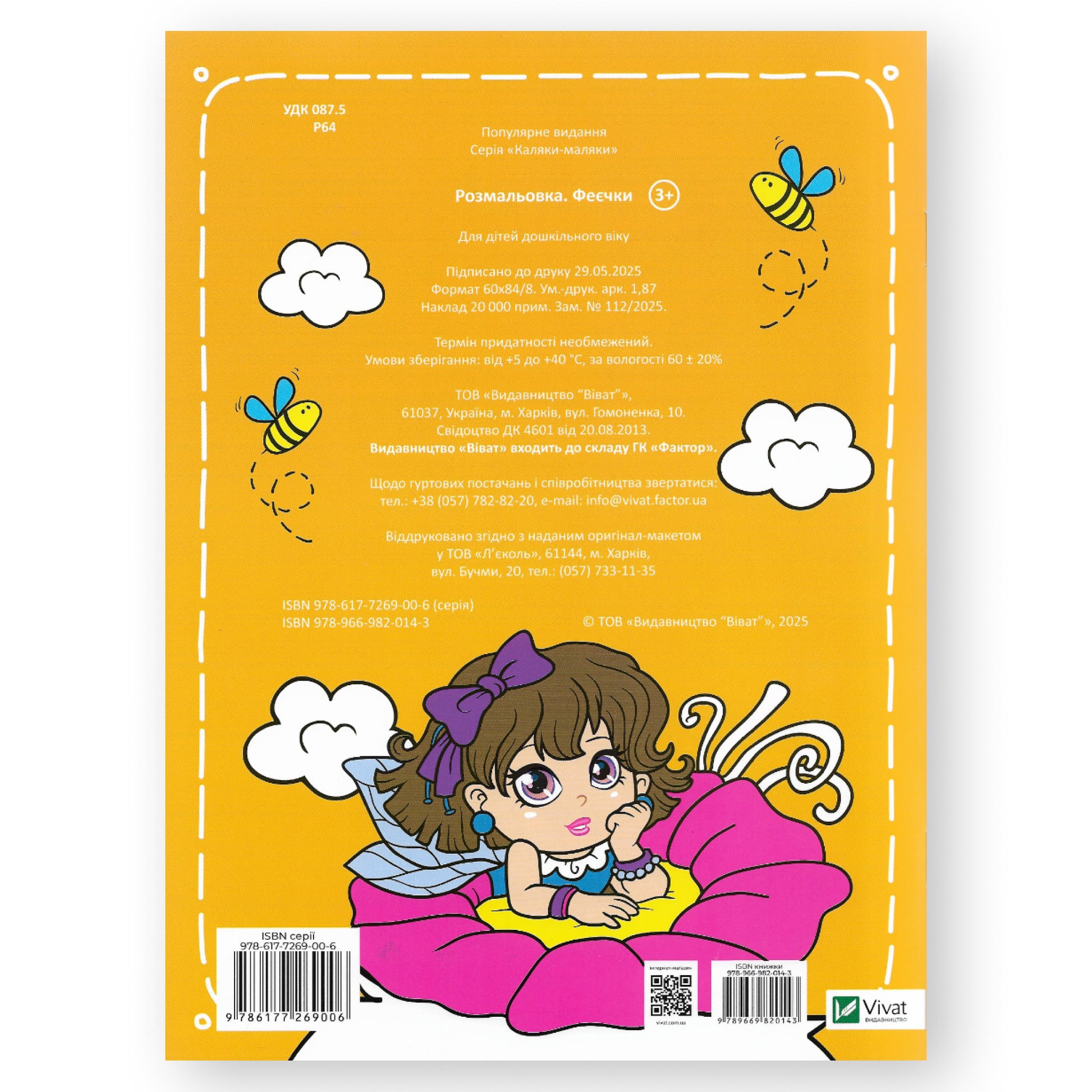 Дитяча розмальовка "Феєчки" серії "Каляки-маляки" це зручний та веселий спосіб провести час з малечею та розвинути творчість, уяву та координацію.