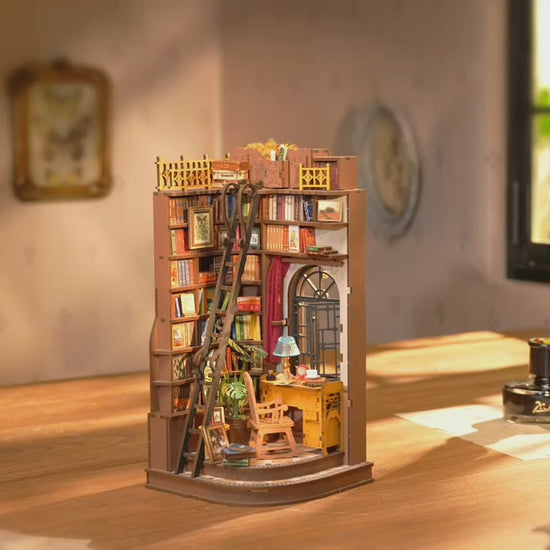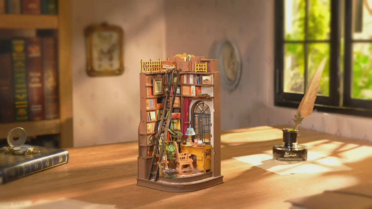 Уяви невеликий затишний куточок, який оживає просто на твоїй книжковій полиці. Це одночасно і мініатюра, і book nook, і підставка для книг. Витончений світ із теплими вогниками, шафами з книгами та дрібними деталями, які створюють атмосферу справжньої книгарні.