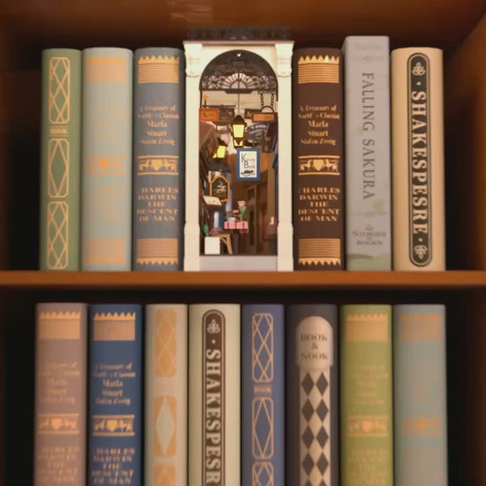Відчуй дух романтичного Парижа просто вдома. Цей book nook переносить у старовинний пасаж із кав’ярнею, книгарнею й м’яким світлом, що нагадує вечірню прогулянку вузькими вуличками французької столиці. Скляний дах, декоративна арка, вуличні вивіски — кожна деталь створює настрій старого міста.